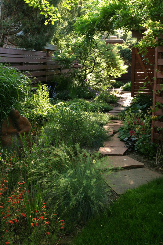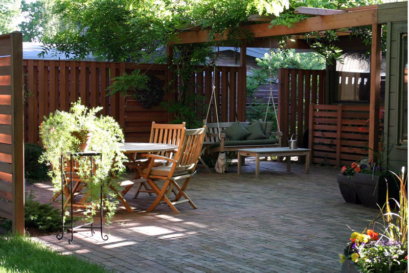 those of the 1950's. Incorporate a place for an easy care fountain and some perennials. Update